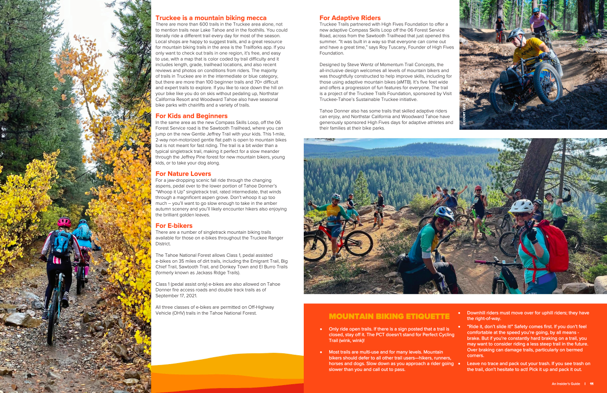 Spring may have the best mountain biking in Truckee, but fall runs a very close second. The weather has cooled, summer tourism has slowed, and brief rain showers pack down dusty trails. And while mountain biking used to be limited to a select few, today all types of riders can feel the rush of speeding through the pines on their own wheels.