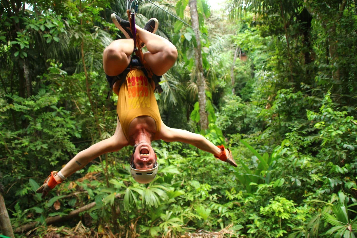 Facing my fears! Going upside down on the zip line in Costa Rica.