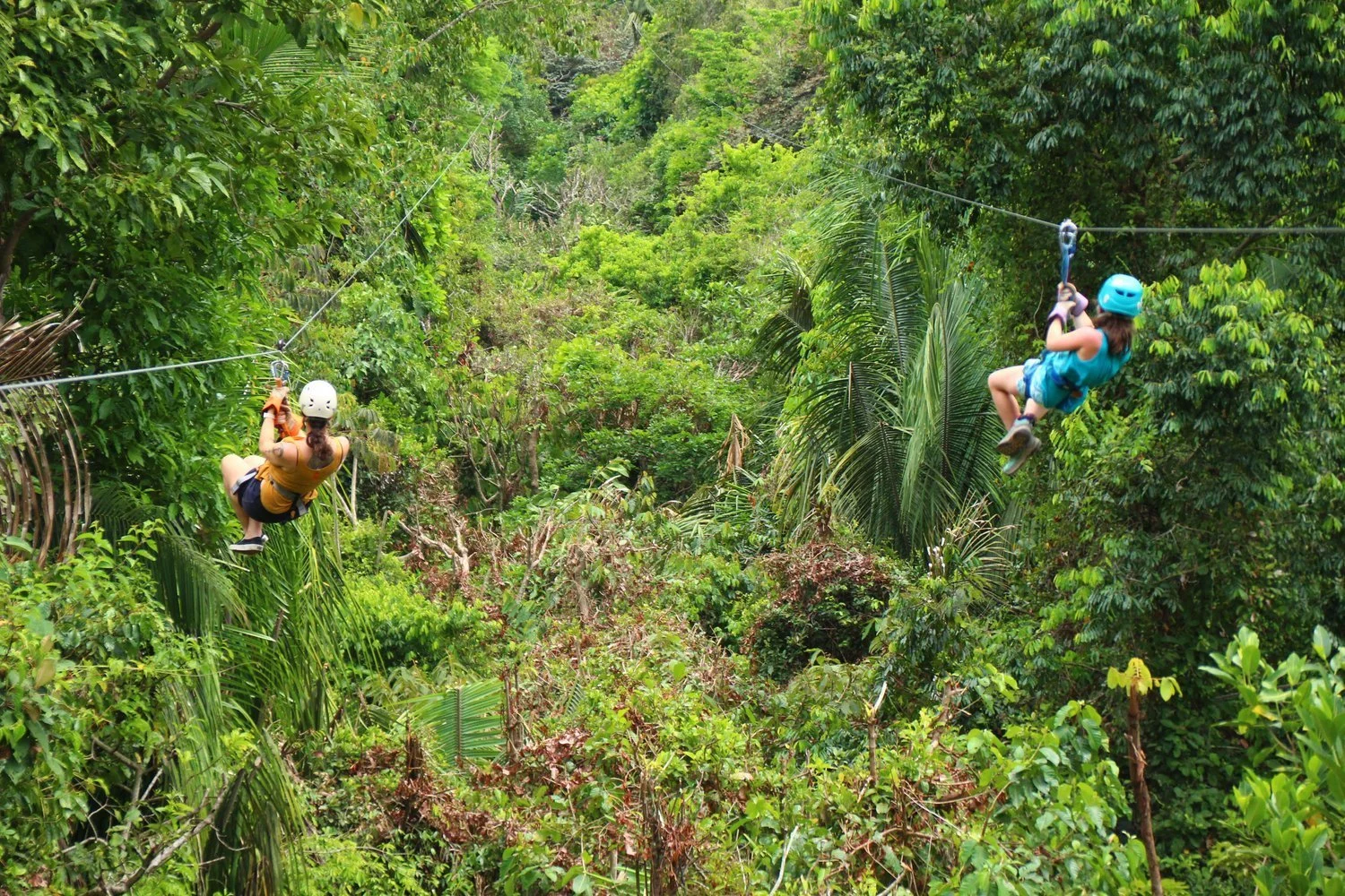 “Uno! Dos! Tres!” the guide shouted, and then he pushed her off the platform. Her shriek was the sound of pure, uninhibited delight mixed with surprise, and she glided through Costa Rica’s rich jungle canopy. Her flight caused the cable to sing through the trees like the electric buzz of live power lines, but deeper.
